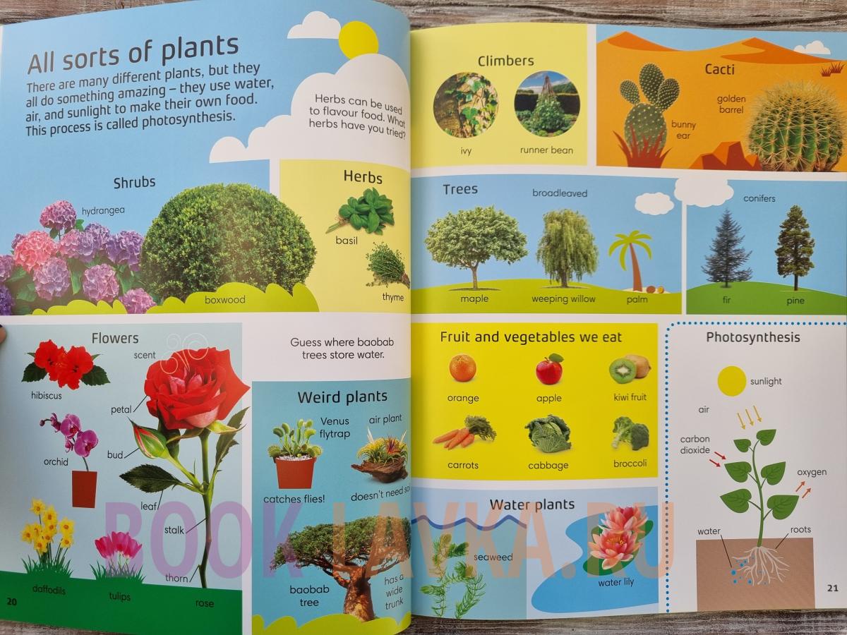 Эта книжка с картинками помогает детям пополнить словарный запас с помощью тысячи слов об окружающей среде, дикой природе и нашей планете! Она знакомит с ключевыми понятиями, одновременно расширяя словарный запас детей и укрепляя их навыки раннего чтения. Каждая страница с картинками полна увлекательных вещей, таких как части растения, способы общения животных, места обитания и способы помощи в защите природы.