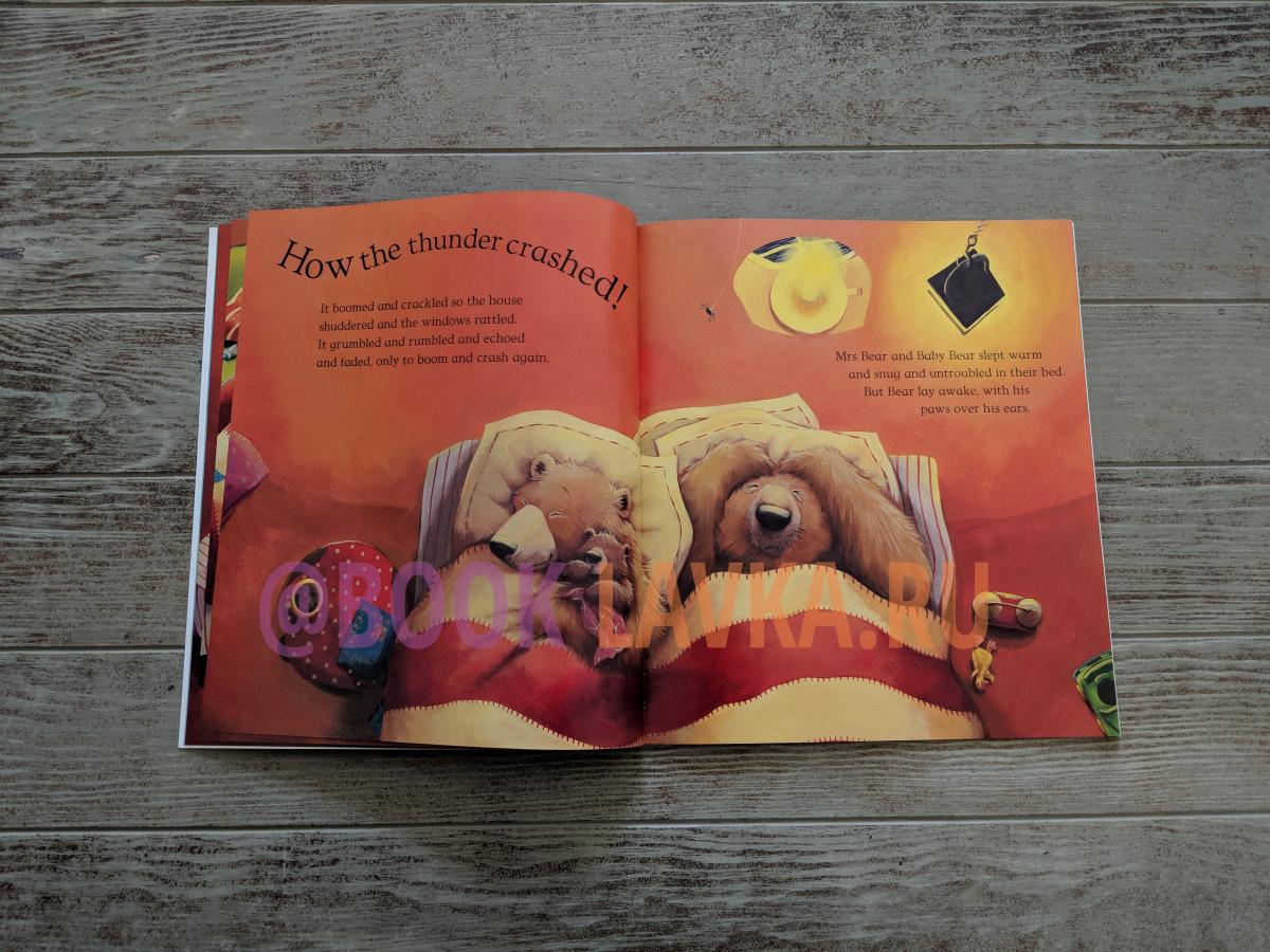 Baby Bear, Little Bear, and Young Bear are scared of a storm. So one by one they climb into bed with their dad. "What scaredy-bears you are!" he says. But when there's a rat-tat-tat at the door and the lights go out, Daddy Bear is not quite as brave as he seems.
