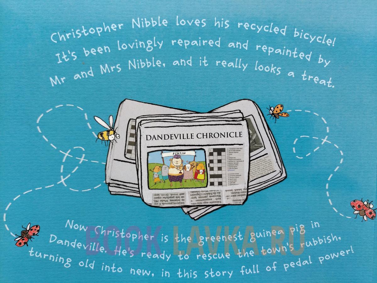 Кристофер Ниббл обожает свой переработанный велосипед! Мистер Ниббл так красиво все починил и перекрасил, а миссис Ниббл превратила одно из своих старых платьев в очень полезную седельную сумку. Это действительно выглядит лакомством. Теперь Кристофер-самая зеленая морская свинка в Дандвилле. Он готов спасти городской мусор, превратив старое в новое, в этой истории, полной педальной силы! Вдохновленный своим собственным переработанным велосипедом, Кристофер спрашивает мисс Заемщик в библиотеке, мистер Розетти в