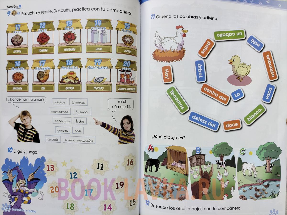 Estructura del Libro del alumno: El Libro del alumno se divide en 9 unidades. Cada unidad se divide en tres sesiones a doble página y un cómic final a doble página en el que se recogen los contenidos estudiados a través de una divertida historia. Estructura del curso ¡Hola, amigos!: Igualmente se compone de 9 unidades didácticas organizadas en ocho sesiones que aportan un extenso material multimedia para el trabajo interactivo de todas las destrezas, incluida la pronunciación.