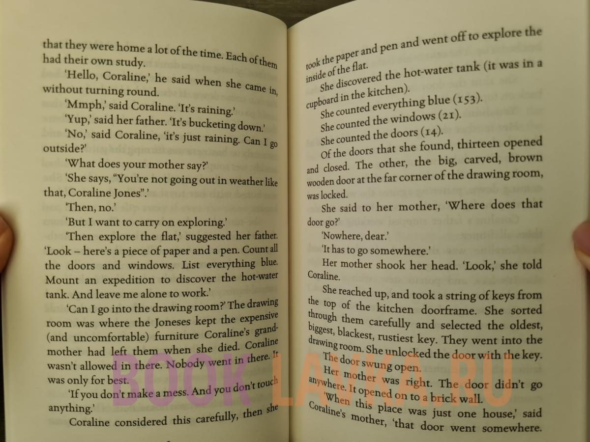 It's not the mist, or the cat that always seems to be watching her, nor the signs of danger that Miss Spink and Miss Forcible, her new neighbours, read in the tea leaves. It's the other house - the one behind the old door in the drawing room. Another mother and father with black-button eyes and papery skin are waiting for Coraline to join them there. And they want her to stay with them. For ever. She knows that if she ventures through that door, she may never come back.