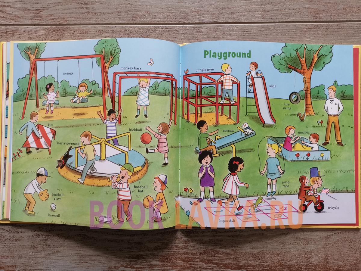 This oversized paper-over-board concept book takes toddlers all over George’s world and theirs. Each page features a different concept: counting, shapes, opposites, emotions, family, jobs, homes, transportation and lots of new words! From morning to night, city to country, home to town and back again, little readers can follow George as they learn more about their own worlds.