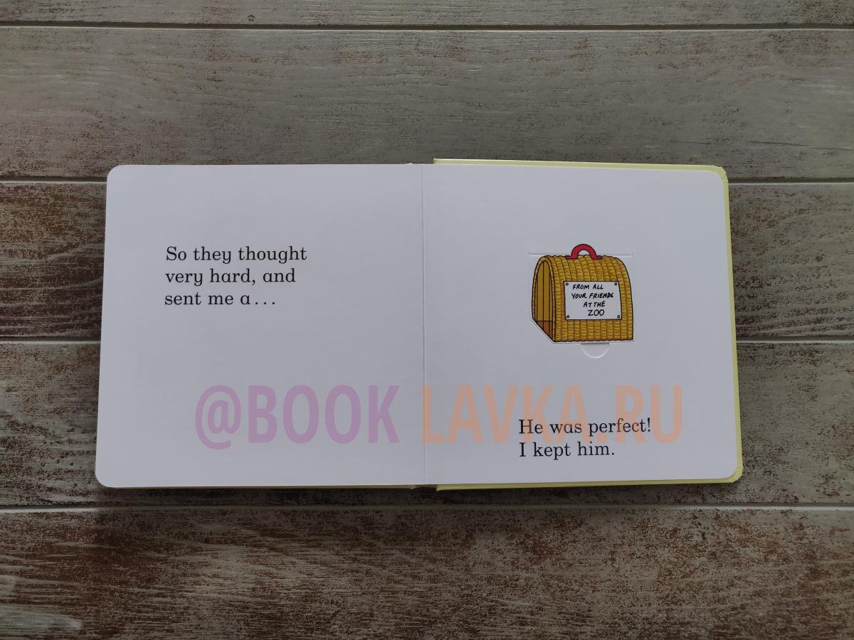 Юным читателям нравится поднимать флэпы, чтобы увидеть животных, присланных зоопарком: обезьяну, льва и даже слона! Но найдут ли они когда-нибудь идеального питомца?