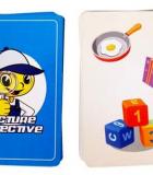 4) За время таймера все игроки из пар ищут нужные изображения и отмечают их своими игровыми фишками. Как только время закончилось, игроки, которые успели найти 3 нужных изображения и отметить из фишками своего цвета, перечисляют найденные слова (каждый своему ведущему), а ведущий проверяет, например, this is the toy hen, this is a donut, this is a cloud.