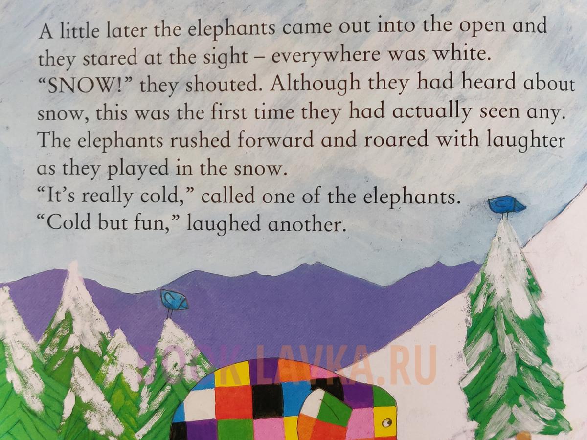 At the first hint of a chill in the air, Elmer's friends start complaining about the cold, so Elmer decides to show them what cold weather is really like. They set off for a walk up a mountain, and the higher they get, the colder it gets. A good snowball fight at the top warms them all up, but the elephants agree that compared with the freezing mountain top, their home is not really that cold at all. With his typical sense of mischief and fun, Elmer shows how hot and cold are only relative