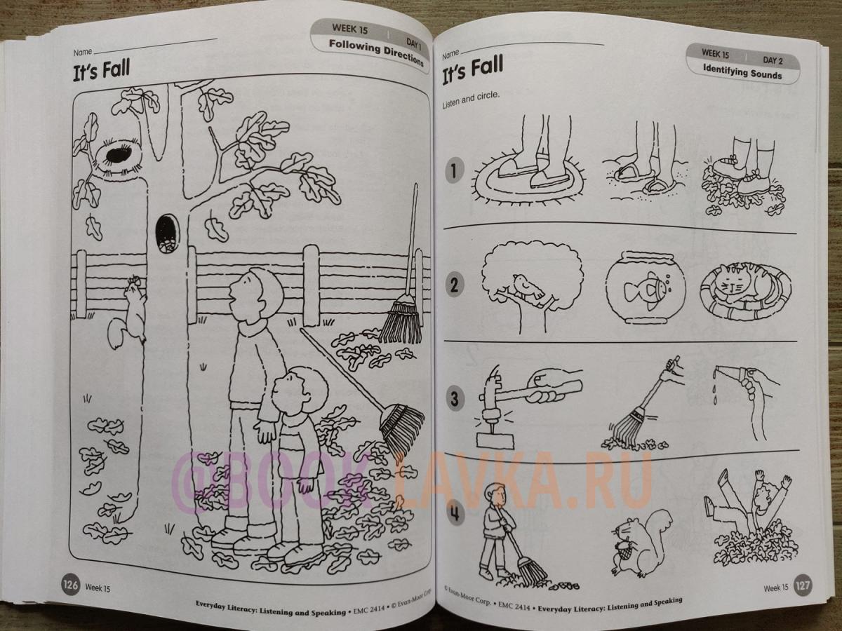 Everyday Literacy: Listening and Speaking, Grade PreK helps you support receptive and expressive language development in your early reading program with fun, focused daily lessons. The 20 weekly units in grade PreK cover Early Reading First's Four Dimensions, including: Oral Language: - Using new vocabulary - Relating new vocabulary to prior knowledge - Identifying objects through receptive language - Developing auditory memory - Using descriptive language - Reciting short poems, rhymes, and songs - Describing the actions of characters in a story - Responding orally to simple questions - Listening for different purposes - Following directions Phonological Awareness: - Indentifying rhymes and rhyming sounds in familiar words - Beginning to attend to the beginning sounds in familiar words - Beginning to break words into syllables - Clapping along with each syllable - Identifying and counting phonemes Comprehension: - Making predictions - Making connections using illustrations, prior knowledge, and real-life experiences - Noting details - Recalling details - Identifying sequence of events - Distinguishing between real and make-believe - Determining cause and effect Motor Skills: - Developing small muscle coordination - Developing large muscle coordination