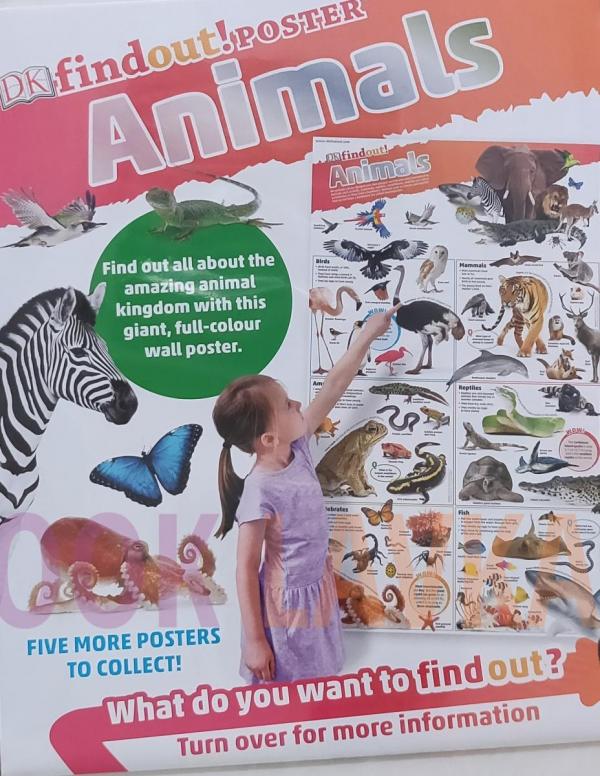 From tigers to turtles and owls to octopuses, discover the characteristics of the five different types of vertebrates and the features of invertebrate animals with the DKFindout! Poster Animals. Sections are composed of stunning photographs dedicated to a different sub-species, alongside interesting related animal facts and fun questions to answer.
