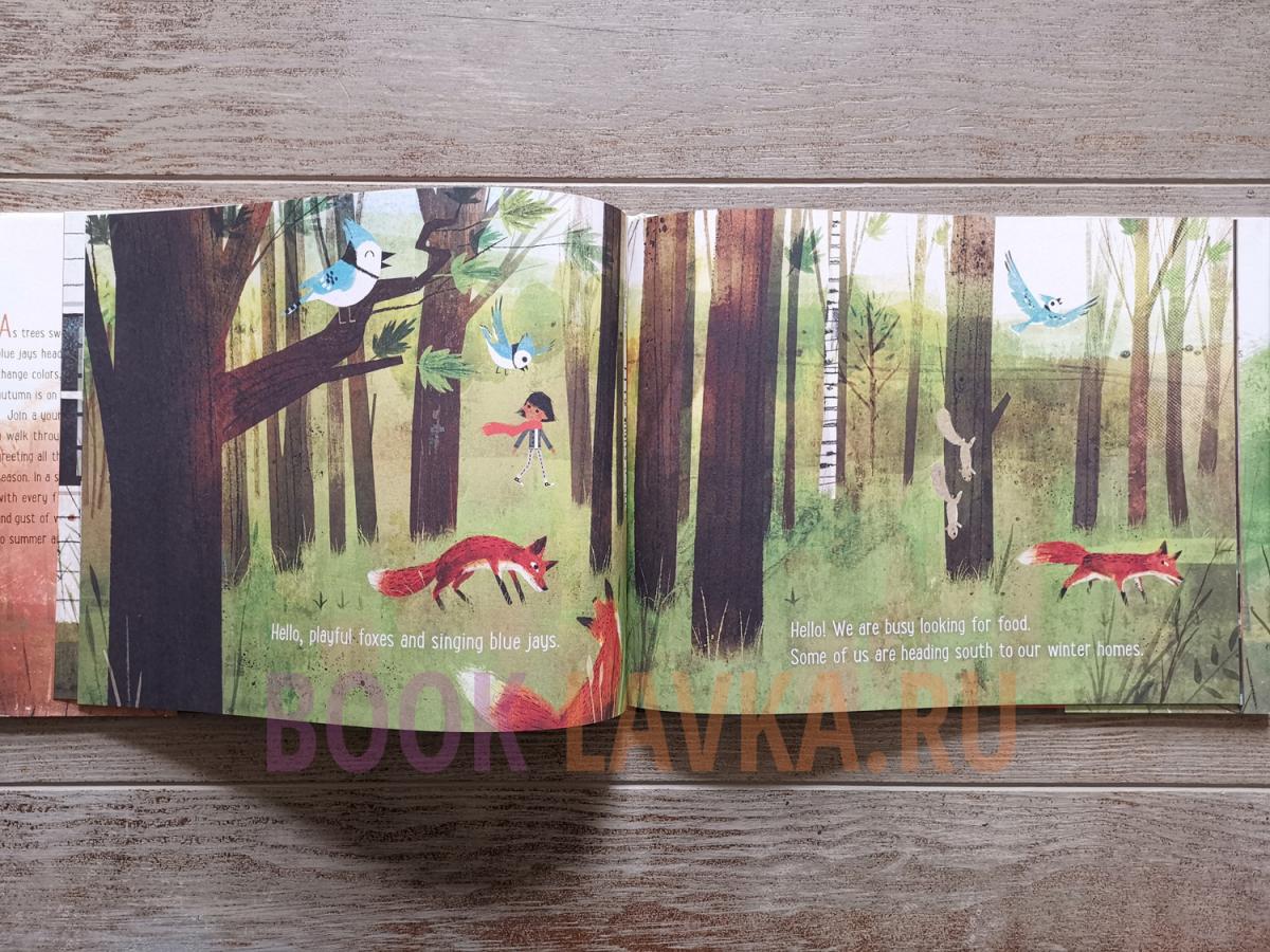 As trees sway in the cool breeze, blue jays head south, and leaves change their colours, everyone knows - autumn is on its way! Join a young girl as she takes a walk through forest and town, greeting all the signs of the coming season. Glorious, evocative Illustrations portray this childlike conversation, saying goodbye to summer and welcoming autumn.