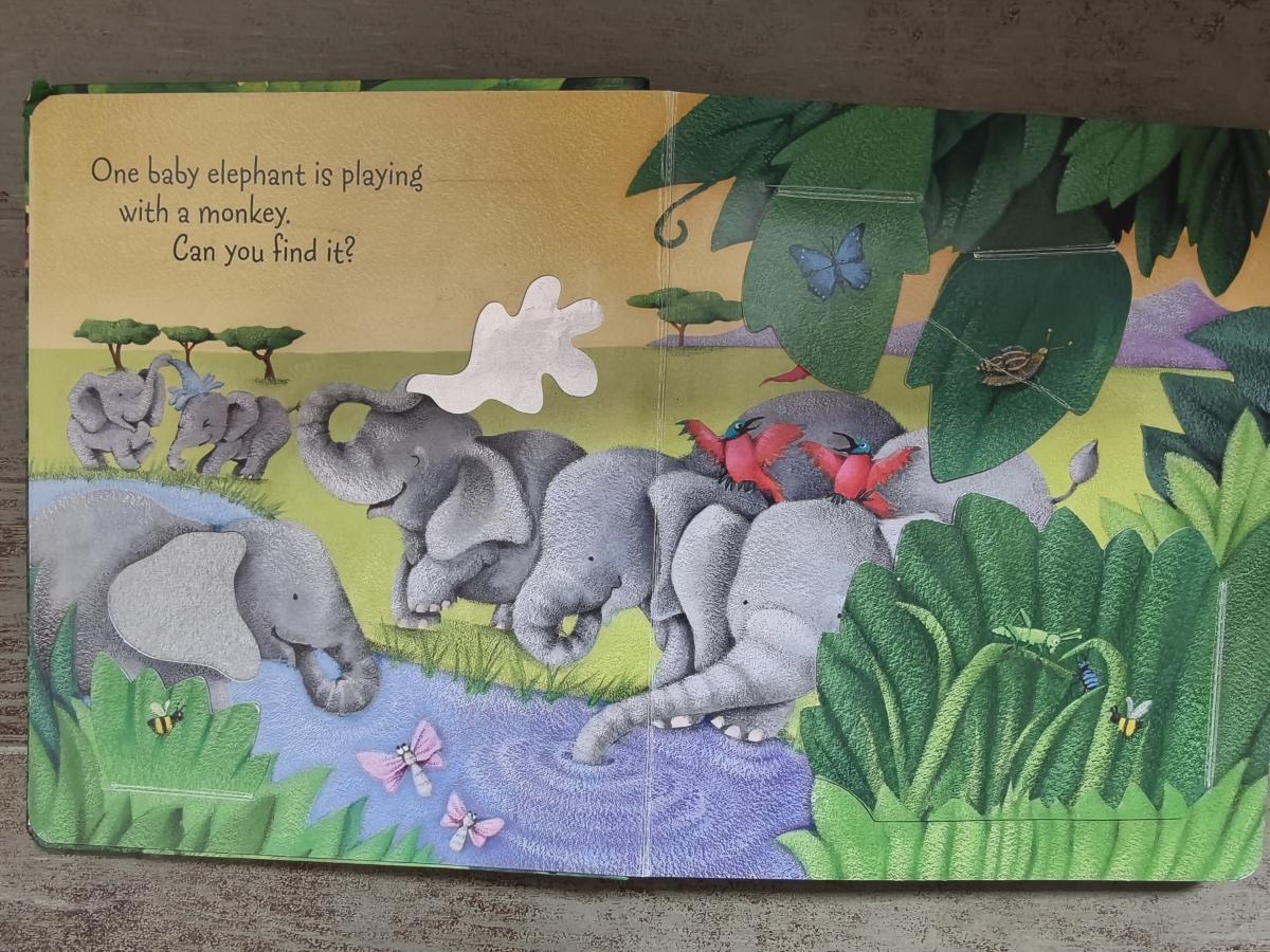 Где прячутся детеныши животных? Эта восхитительная, трогательная книжка с откидными створками побуждает детей приподнимать створки и находить спрятанных в них слонят, пингвинов, кроликов, коал и львят, которые по ходу дела учатся считать. Под каждой из прочных створок скрывается множество сюрпризов.