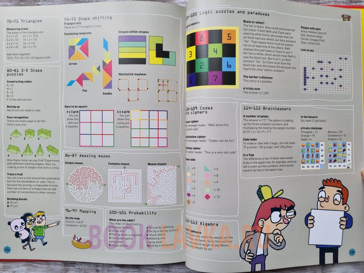 Станьте лучше в математике и числах, осознав, какие математические навыки вы уже используете в повседневной жизни, и изучайте новые, получая удовольствие! Осознаете ли вы, сколько математики вы уже используете, играя в компьютерные игры, планируя путешествие или выпекая торт? Эта книга показывает, как расширить уже имеющиеся у вас знания, как работает ваш мозг и как вы можете стать еще лучше во всех областях математики. Исследуйте удивительную алгебру, загадочные простые числа, суперпоследовательности и особые формы. Испытайте себя с помощью викторин, на которые нужно ответить, головоломок, которые нужно разгадать, кодов и геометрических иллюзий, которые вдохновят вас, и познакомьтесь с громкими именами и еще более выдающимися умами, которые вошли в историю математики, такими как Пифагор, Грейс Хоппер и Алан Тьюринг. Независимо от того, являетесь ли вы мастером математики, помешанным на цифрах или совершенно не разбираетесь в вычислениях, всегда тренируйте свой мозг! Эта важная книга объясняет основные идеи, лежащие в основе математики, чтобы дать юным читателям больше уверенности в их способности справляться с числами и математическими задачами, и помещает идеи в контекст, чтобы помочь детям понять, почему математика действительно полезна и даже увлекательна! Забавные иллюстрации в мультяшном стиле помогают познакомить с понятиями и прояснить эту науку.