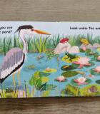 Who is busy in the hive? What is flying around the pond? Who is hiding in the trees?