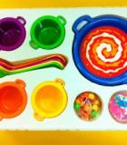 В наборе: - 1 чашка для перемешивания алфавита - игровые тарелки - 4 ложки - 40 шариков с буквами - скатерть - 20 карточек со словами - инструкция к игре. Letter Soup оригинальная игра для изучения алфавита и написания первых слов. Цель игры – достать из чашки нужные буквы и сложить слово быстрее остальных участников. Побеждает игрок, собравший наибольшее количество слов. Шарики с алфавитом помещаются в специальную чашку, которая, вращаясь, перемешивает буквы (работает на 2 батарейках, в комплект не входят) Карточки со словами размещаются в игровые тарелки