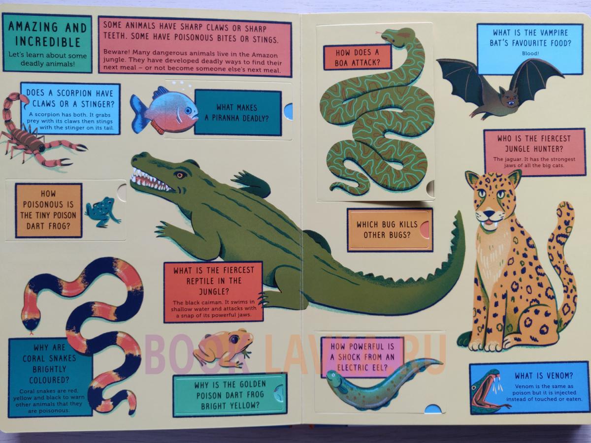 Which animals live in the jungle? What noises will you hear? And how do the plants grow? Find out the answer to these and many more questions in this fun fact-filled lift the flap book. Discover the secrets of the jungle with 100 questions and answers and more than 70 lift-flaps to be opened! With stunning, detailed illustrations throughout, this is the perfect introduction to the world of the jungle for young children.