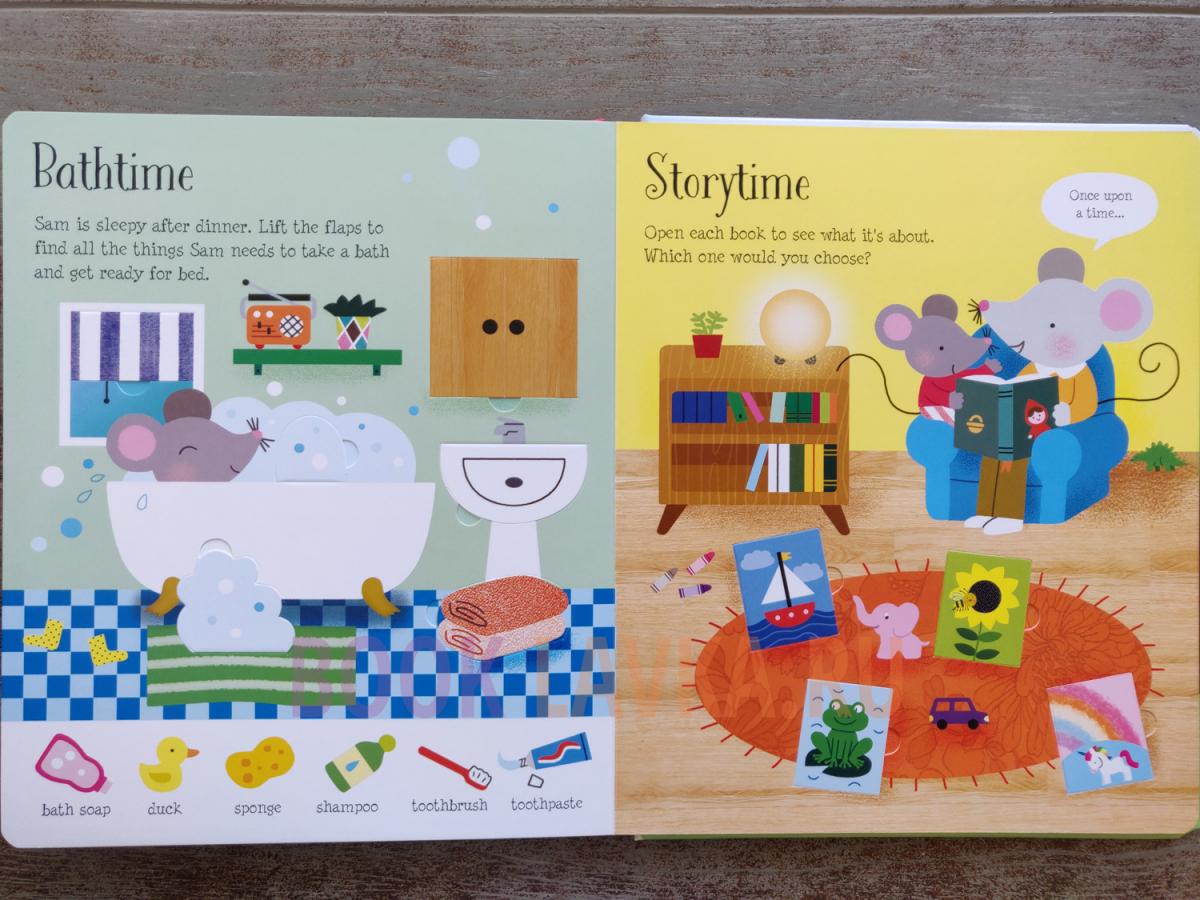 Эта очаровательная книга, в которой нужно поднять более 75 клапанов, поможет детям узнать о рутинных и повседневных событиях, таких как одевание, обед и укладывание спать. Каждая страница заполнена тем, что можно заметить и обсудить, а также есть действия по подсчету и сопоставлению. Восхитительная книга, которой можно поделиться и которая поможет развить языковые навыки.