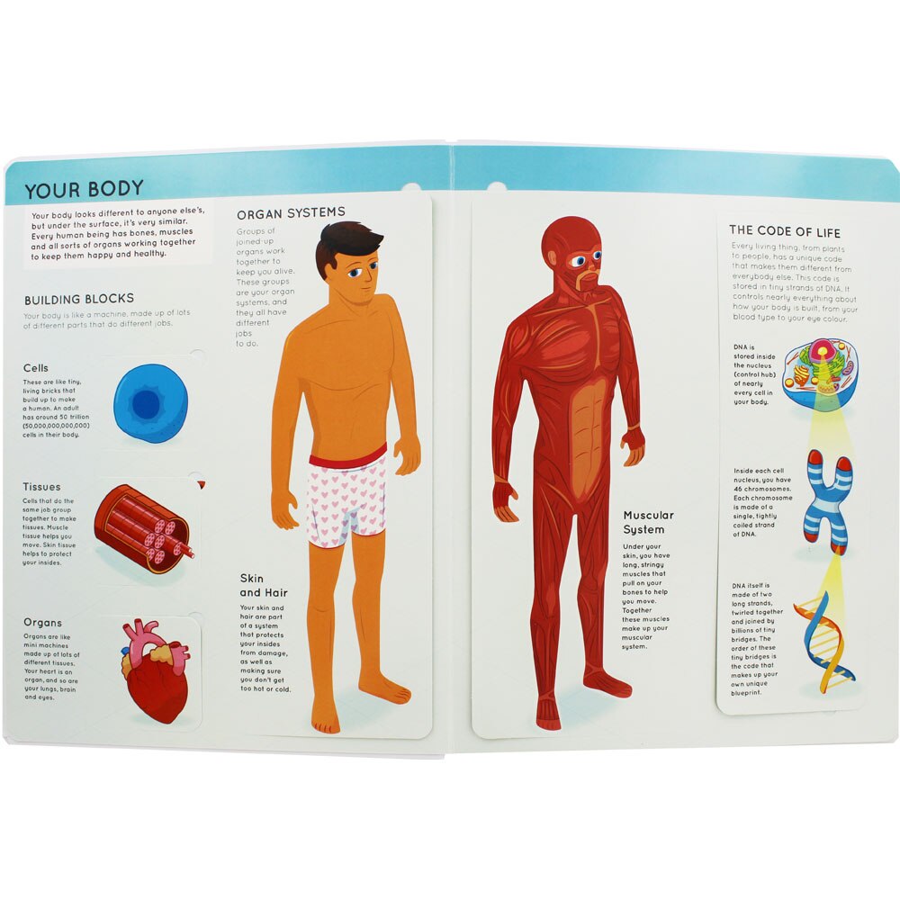 Lift the flaps to discover the hidden world inside your body, from your hair to your toenails. Find out what really goes on underneath your skin, with unbelievable facts and amazing drawings that show you how your body works.