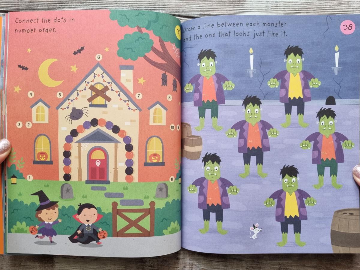 Packed with pumpkins, bats, witches, wizards and monsters, this puzzle book includes mazes, dot-to-dot, spot the difference, simple logic puzzles and wordsearches that will keep children entertained while helping develop their skills in reading, counting and observation. It is ideal for journeys, holidays and dreary autumn days.