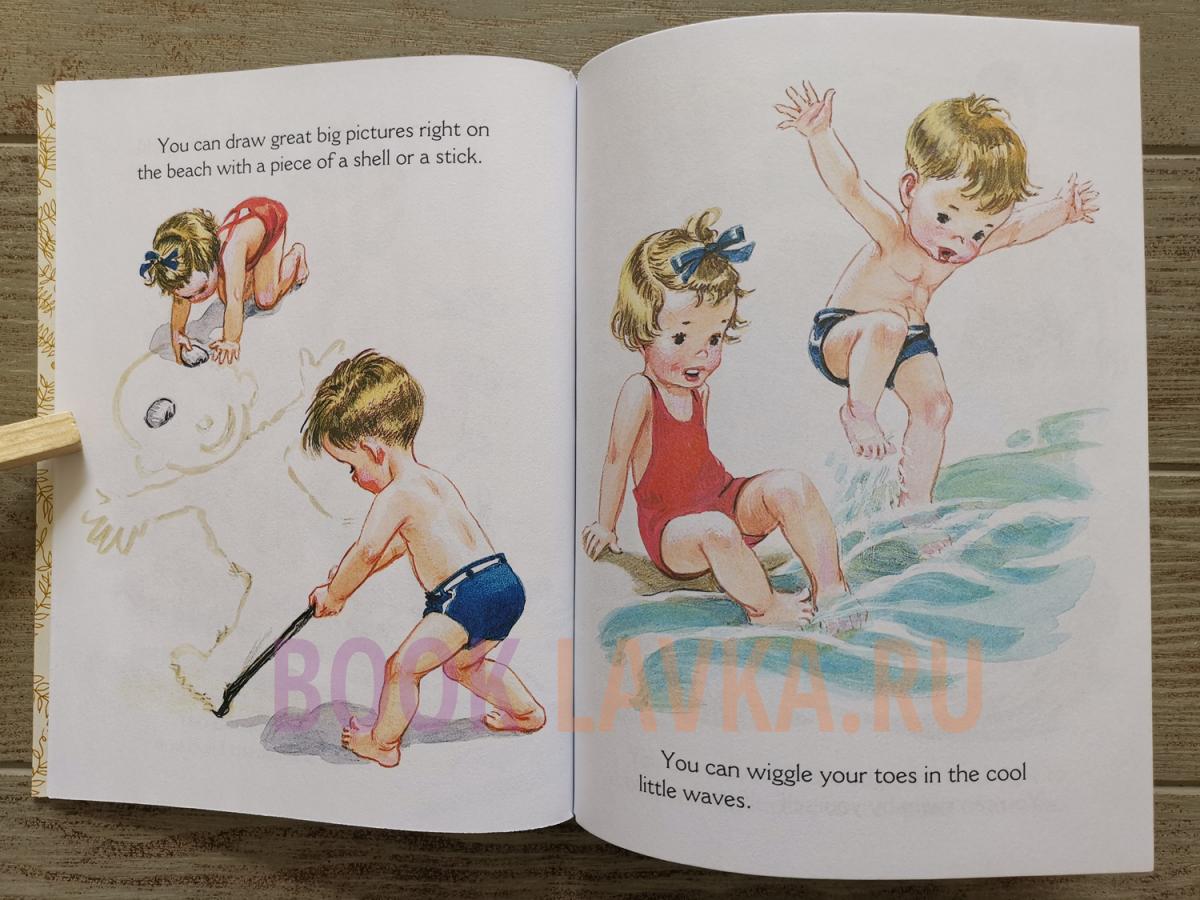 Однажды летним утром Нэнси и Тимми вскакивают со своих кроватей и помогают упаковать купальники и обед, чтобы отправиться на берег моря! В очаровательной рифме эта Маленькая Золотая книжка 1951 года (тогда называвшаяся "День на пляже") описывает, что там найдут дошкольники!