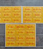 Инстукцию (на английском языке) можете посмотреть в фотографиях. В наборе: 4 игровые карты с волшебниками 30 фишек с ингредиентами 30 карточек со примерами инструкция на английском языке Варианты игры: Варим зелье! В игре Magic Maths ребятам предстоит приготовить зелье. Чтобы собрать нужные ингредиенты, необходимо верно решить пример. Тренируем сложение и вычитание. Yucky spell ingredients: worm-infested cupcakes, eyeballs, slug, tooth with caries, potion, spider, worm, toad, dirty panties, worm-infested apple, snail, worm-infested piece of cheese, a skull, a piece of shit, brains, poison, toadstools, bone, ear, rotten egg, rotten banana, stinky sock, stinky boot, snot, octopus tentacle, feather, witch finger, rubber duck Подготовка к игре: 1) Игроки берут по одной карте с волшебниками. 2) Разложите фишки с примерами на середине стола звездочками вверх. 3) Перемешайте карточки со ингредиентами и раздайте игроками по 6 штук. Карточки у игроков лежат цифрами вверх. Ход игры: 1) Первый игрок берет карточку с примером со стола, переворачивает и решает пример. Например, sixteen plus seven is twenty three. 2) Затем игрок смотрит свои карточки и проверяет, есть ли у него ингредиент под этим номером. 3) Если подходящий ингредиент есть, игрок говорит Abracadabra. 4) Чтобы убедиться, что цифры действительно совпадают, игрок трет пальцем черную звездочку на рубашке карточки с примером. На ней должен появиться верный ответ. 5) Затем игрок переворачивает карточку с секретным ингредиентом и кладет ее на свое игровое поле. 6) В процессе игры участники отрывают свои ингредиенты. 7) После того, как все ингредиенты собраны, волшебники могут придумывают волшебное свойство своему зелью: My potion has some magic ingredients. There is a feather, a worm, a stinky sock, a toad and two eyeballs. It will bring you good luck and scare away your enemies.