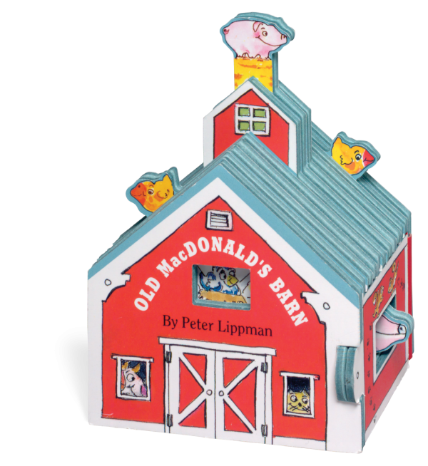 We all know the song of Old MacDonald. Now enjoy this boisterous song in board book format, with this innovative sculptural full-color book that looks just like a barn! It's a terrific way to find out about the different farm animals and the sounds they make, and great fun to sing along with the pictures. Unlatch the door and come inside-oink with the pink pig in the tub and gobble with a family of turkeys. There's a happy ending too as all the animals join together for one joyful barnstomping finale. A terrific book for ages 1 and up.