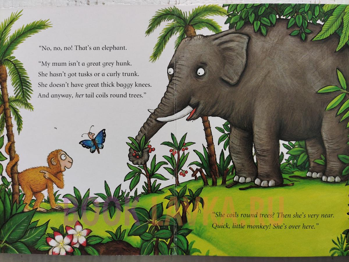 Не так уж весело заблудиться в джунглях, а маленькая обезьянка хочет найти свою маму. Добрая бабочка стремится помочь, но, похоже, им не очень везет и они продолжают находить не тех животных! Но в конце концов они находят... Папу! Хорошо еще, что он точно знает, где мама, и она ждет маленькую обезьянку с заслуженными объятиями.
