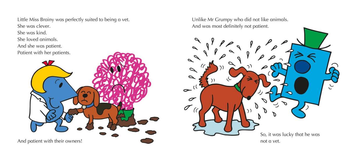Присоединяйтесь к мистеру Мену и Маленькой Мисс на работе в ветеринарной клинике! Маленькая мисс Умница и мистер Тишина ухаживают за множеством разных животных в ветеринарной клинике. Возможно, вы уже встречали похожих питомцев, но есть и такие, которых у вас точно не будет! Кто сегодня посетит ветеринарную клинику? Эта новая серия знакомит с мистером Меном и Маленькой Мисс на работе и идеально подходит для маленьких детей, которым интересно играть и узнавать о том, что происходит во взрослом мире труда.