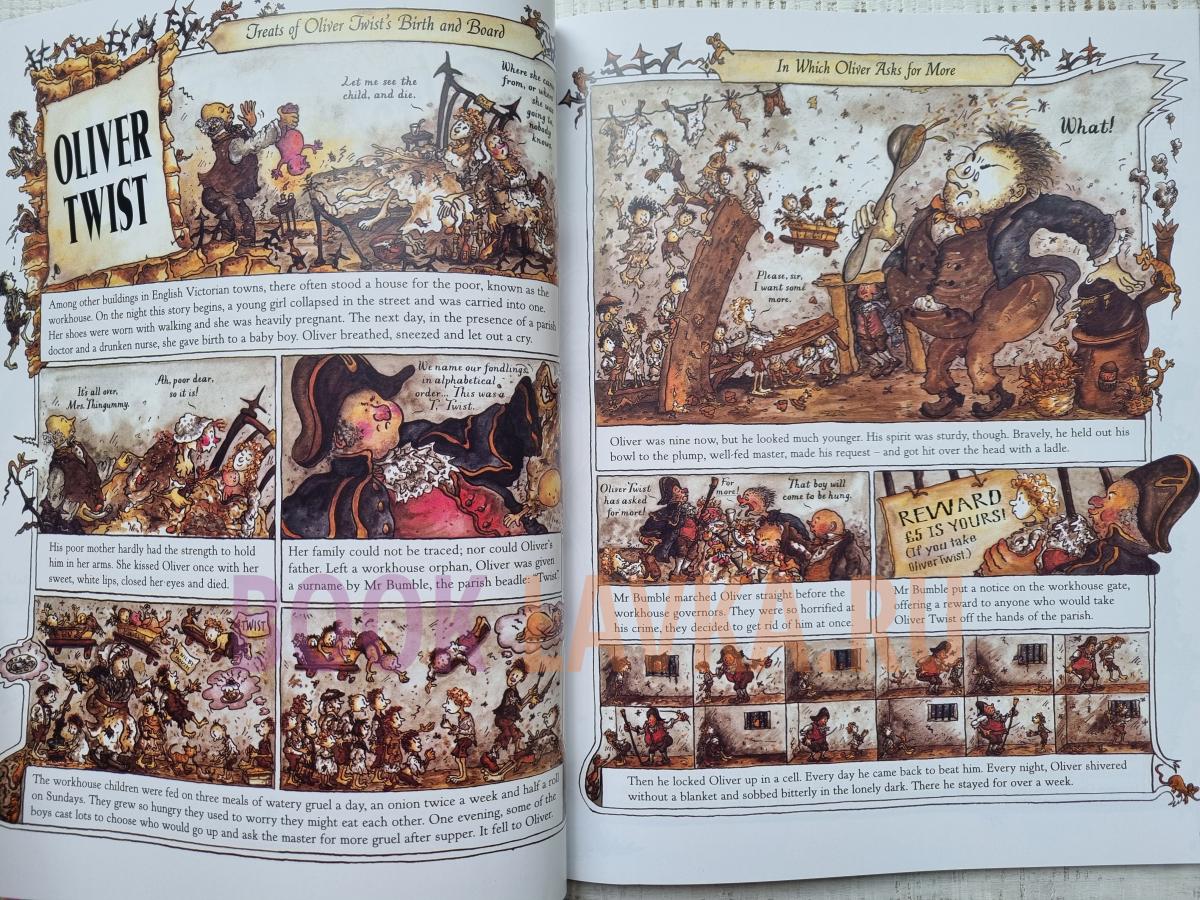 Познакомьтесь со знаменитыми персонажами Чарльза Диккенса на страницах этой великолепной книги, которая в живом стиле комиксов пересказывает пять его самых популярных рассказов: "Оливер Твист", "Большие надежды", "Повесть о двух городах", "Дэвид Копперфилд" и "Рождественская песнь".