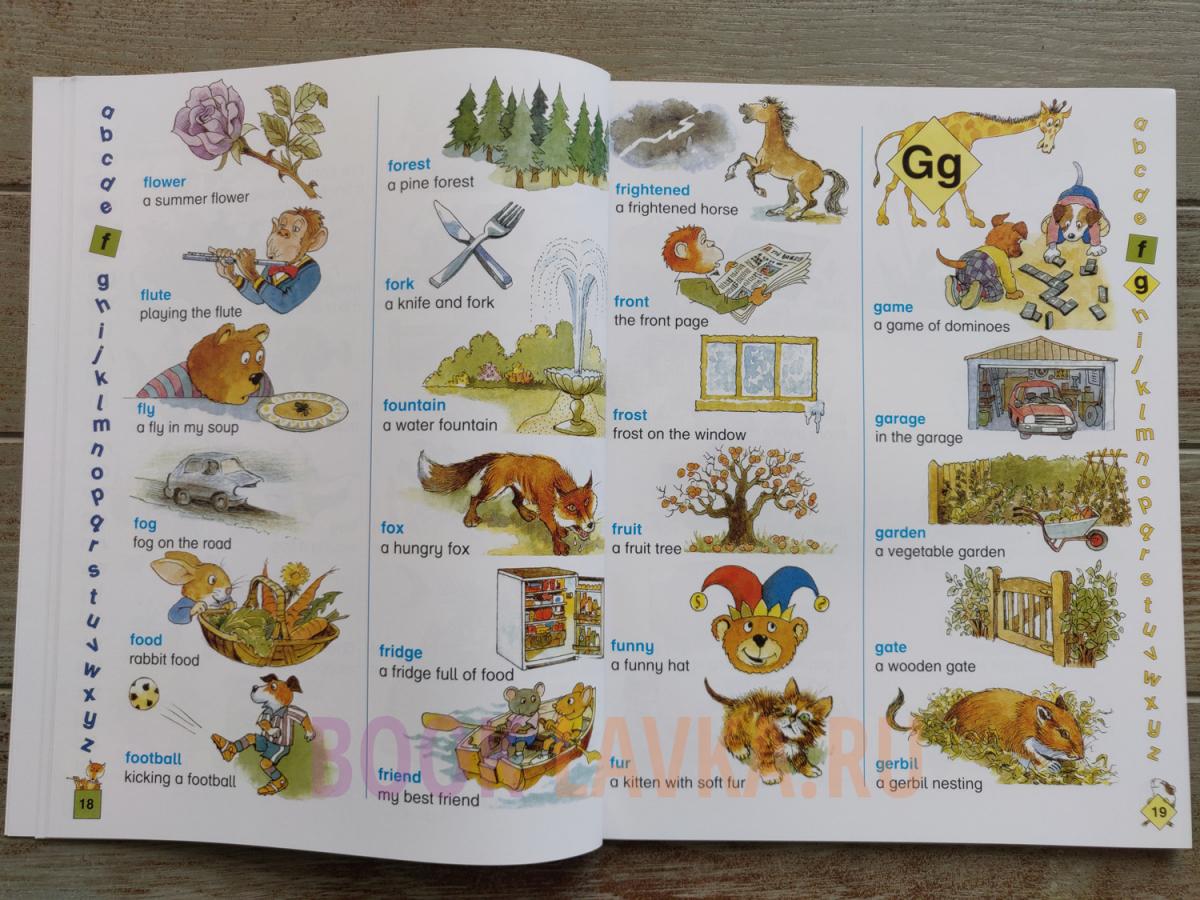 A fun first alphabetic picture dictionary to introduce children aged 4 upwards to reading and writing and looking up words. It has over 500 words listed in alphabetical order, each with an illustration and a useful phrase. The alphabet down the side of each page, with the appropriate letter highlighted, teaches first navigation skills. Additional thematic sections at the back focus on themes - including words from the calendar, outer space, fairy tales, plus the