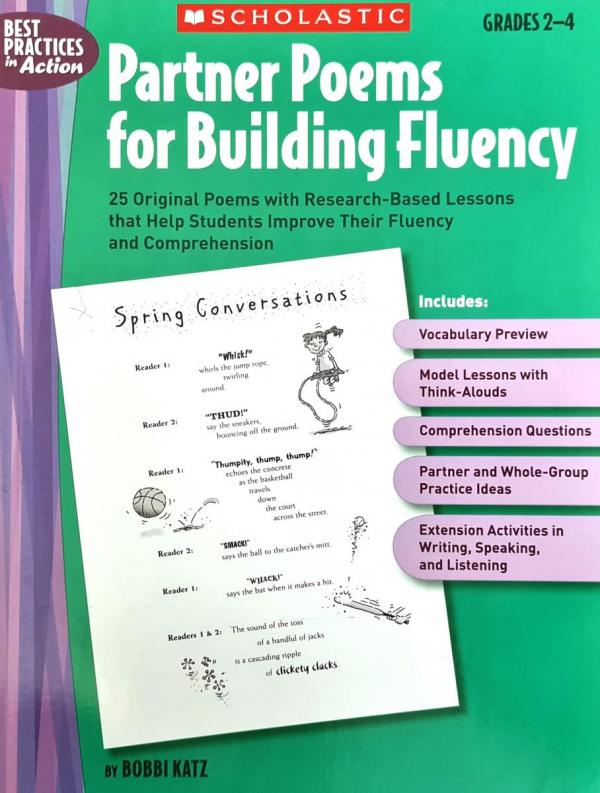 Research shows that partner reading is an effective tool in building reading fluency. The whimsical reproducible poems in this collection were written especially for two students to take turns reading aloud. This experience strengthens both reading and listening skills as students are encouraged to give each other supportive feedback. Accompanying lessons, with think-aloud scripts, offer explicit instruction to help develop fluency. For use with Grades 24."