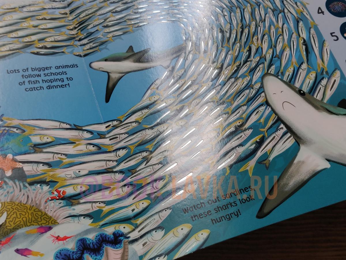 Peek under the flap to reveal the flock of birds in the sky, or school of fish in the coral reef. Then seek all sorts of objects hidden in the animal crowd. Can you find two top hats and five paper planes?