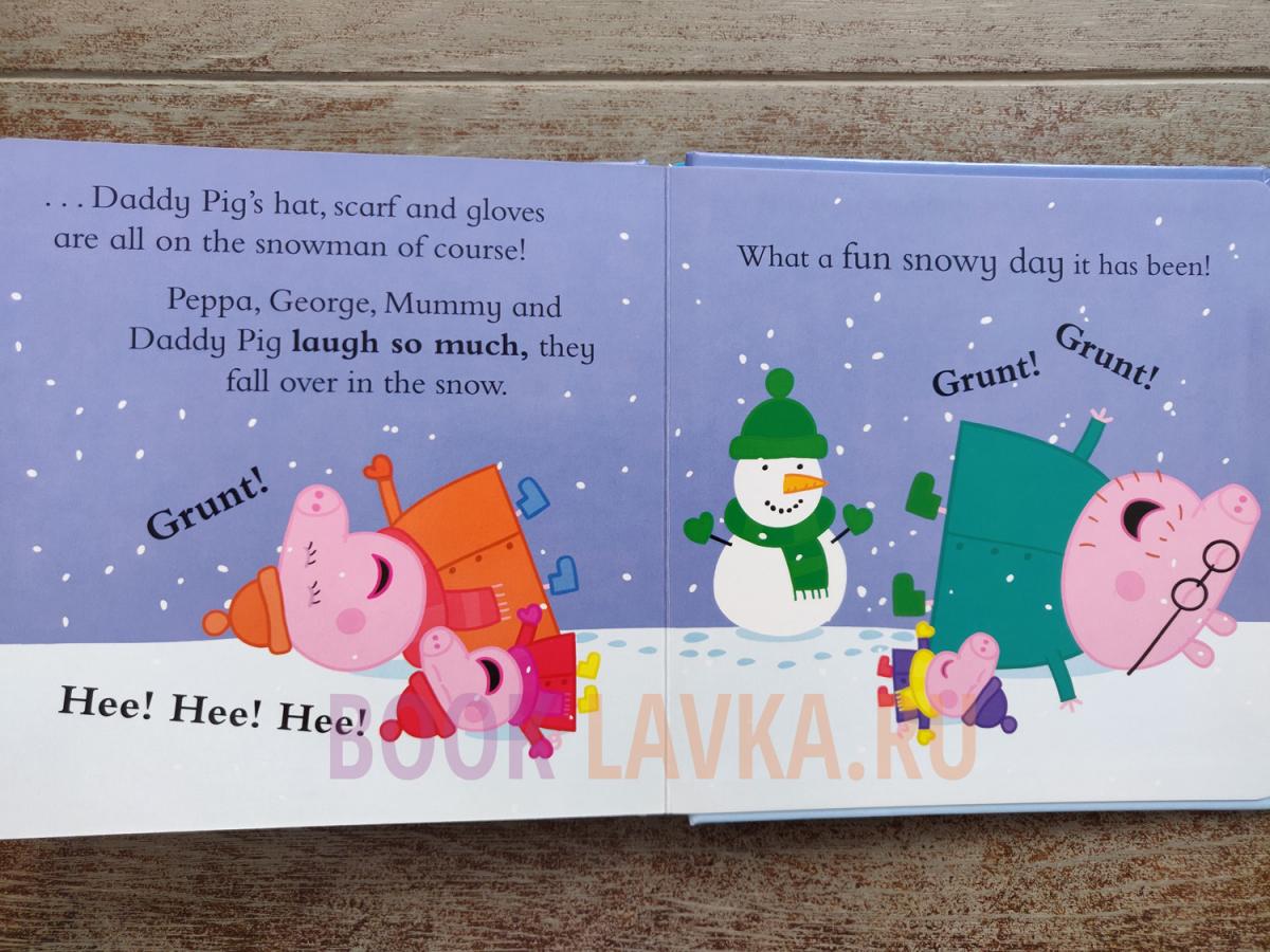 It's snowing and Peppa and George can't wait to get outside and play. Find out what happens when they build a great big snow man in this delightful little winter's tale!