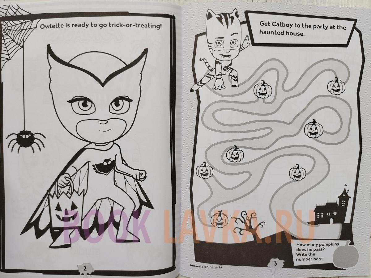 Have a heroic Halloween with this PJ Masks coloring and activity book that includes four crayons with holiday-themed wrappers and more than 30 spooky stickers!