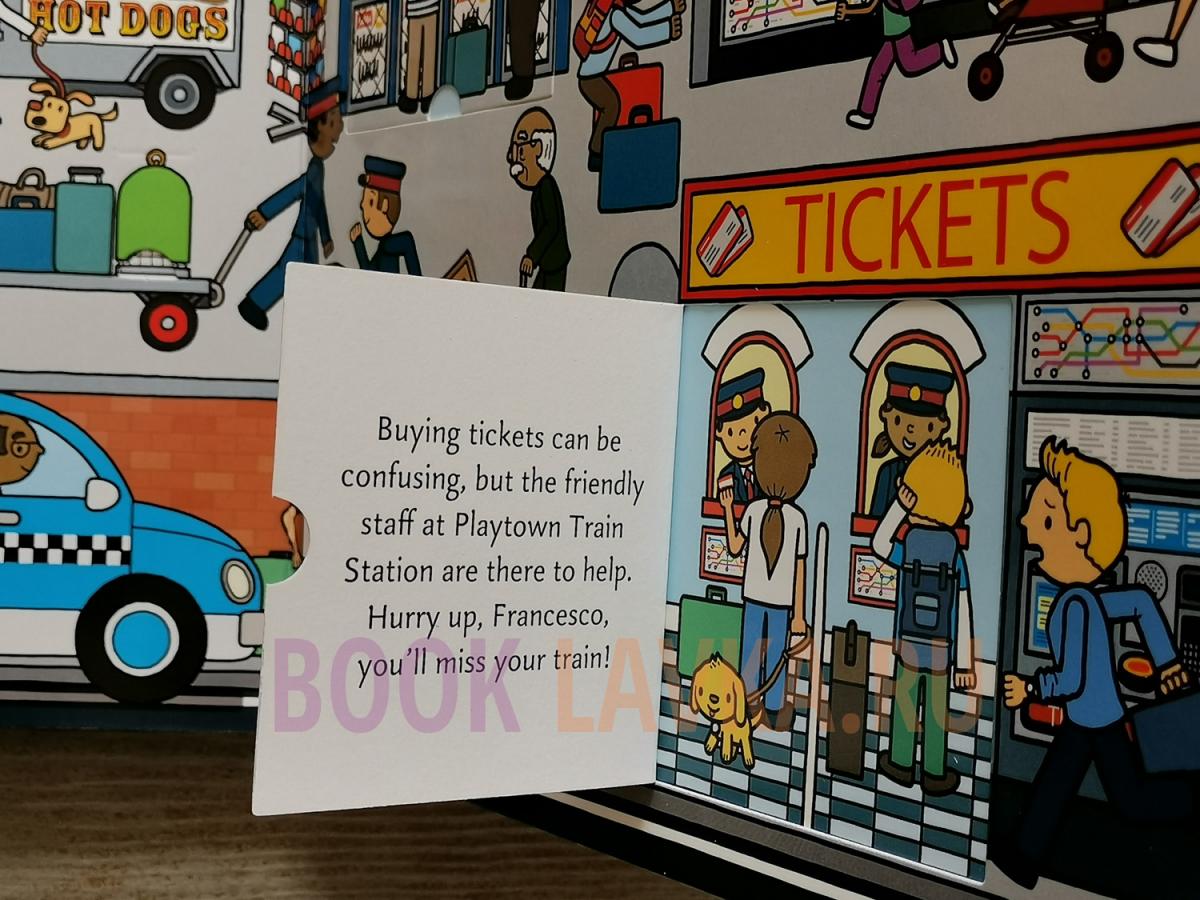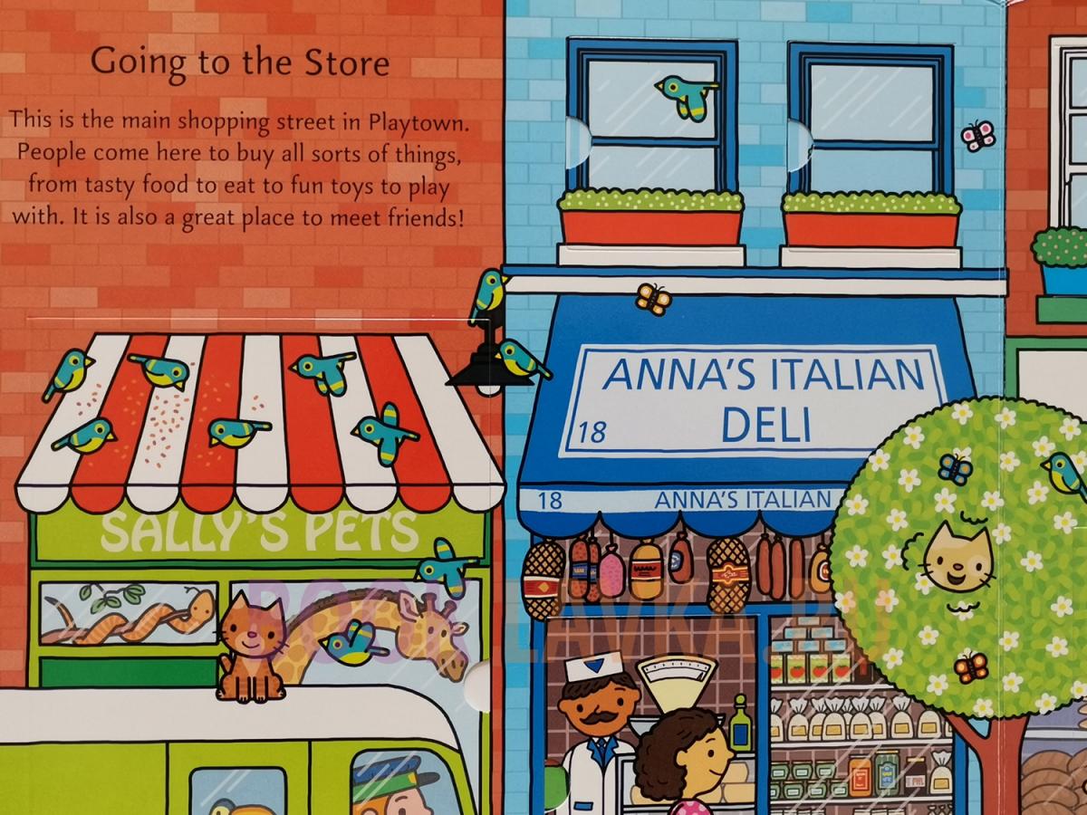 Get ready for a busy day in Playtown! The illustrated interiors are packed with detail, showing busy scenes and cross-sections from around the town, including the airport, the hospital and the shops. There are lots of things to look for and find on every page, and over 35 flaps to find throughout the book which reveal fun scenes.