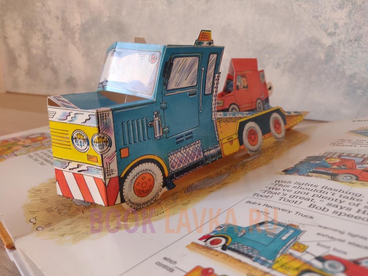 This pop-up book features six pop-up trucks with moveable parts: a tipper truck; tow truck; removal van; fork lift; delivery van; and a fire engine. There are facts and specifications for each machine.