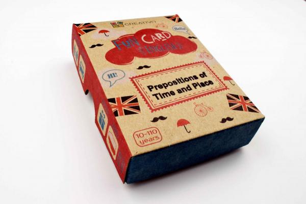 Задача – скидывать карты, подходящие по «масти», выполнив при этом задание на карточке. Например, если игрок кладет на стол карточку “The bus will come … 10 minutes” он должен проговорить ответ, опираясь на картинки-подсказки “The bus will come in 10 minutes” (правильный ответ написан на обратной стороне карточек). Если игрок допустил ошибку, он забирает карточку и его ход не учитывается.