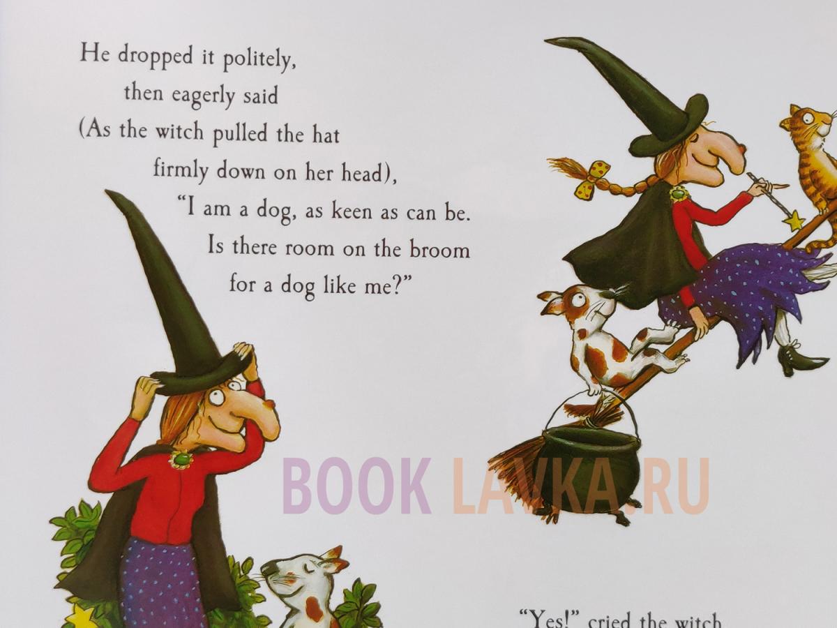 The witch and her cat fly happily over forests, rivers and mountains on their broomstick until a stormy wind blows away the witch's hat, bow and wand. Luckily, they are retrieved by a dog, a bird and a frog, who are all keen for a ride on the broom. It's a case of the more, the merrier, but the broomstick isn't used to such a heavy load and it's not long before... SNAP! It breaks in two! And with a greedy dragon looking for a snack, the witch's animal pals better think fast!