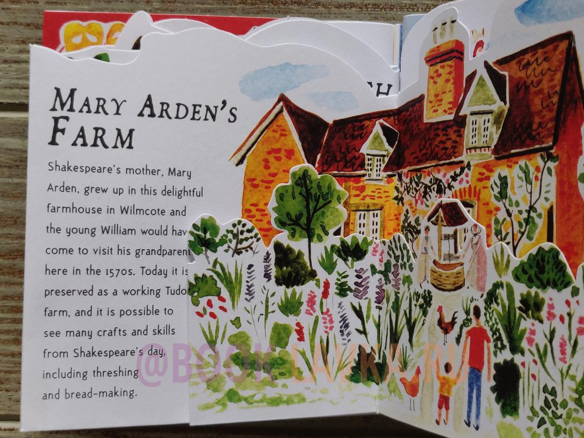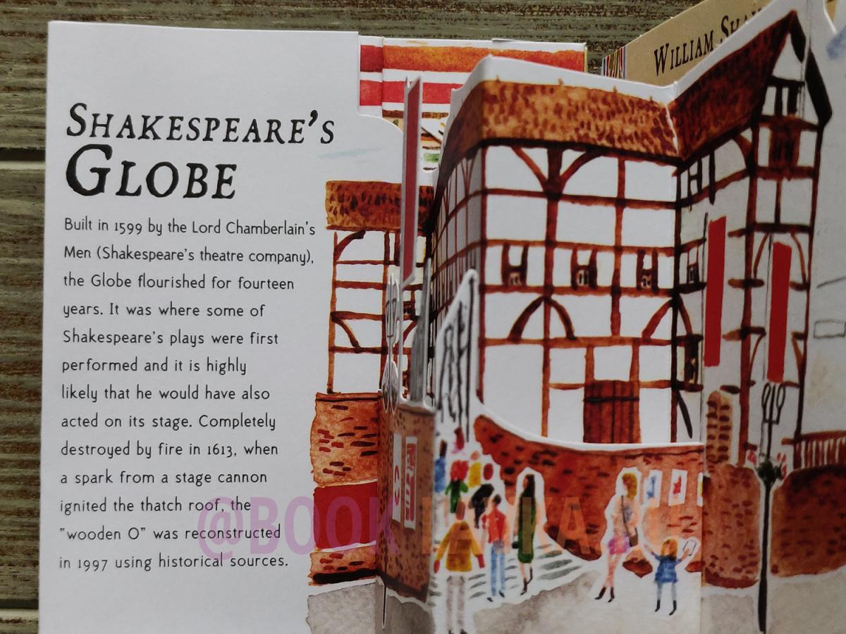 Discover Shakespeare's life and works in this fascinating three-dimensional pocket guide. Bring the Bard's works to life in this three-dimensional expanding pocket guide, which unfolds to a length of 1.5 metres. The first side features Shakespeare's most famous plays including Hamlet, Twelfth Night, Romeo and Juliet, Midsummer Night's Dream, Macbeth and Henry V. The second side features the most important places in Shakespeare's life, including the house where he was born in Stratford-upon-Avon, Anne Hathaway's Cottage, Mary Arden's Farm, Nash House, the Royal Shakespeare Company and the Globe. Beautifully illustrated and presented in a slipcase, this is the perfect gift or souvenir for Shakespeare lovers of all ages.