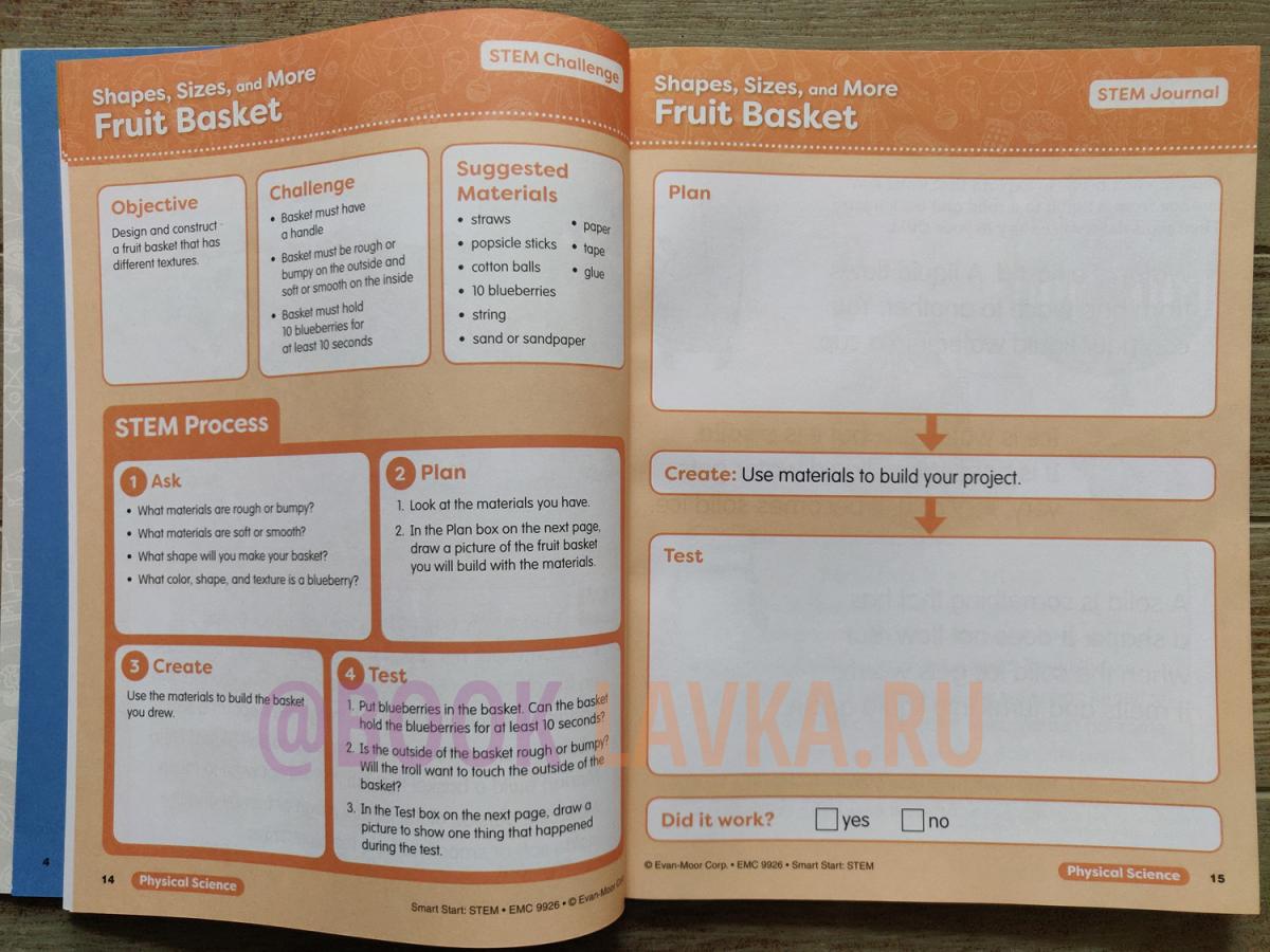 Help your kindergarten-level students learn STEM skills with Evan-Moors Smart Start STEM: Kindergarten. This workbook introduces important science concepts through stories, activities, and fun worksheet challenges that develop foundational science, technology, engineering, and mathematical concepts. Color-coded pages provide visual links for physical science, life science, and earth science topic areas. Students will learn a concept, skills, and complete a challenge at the end of each chapter. Grade K/kindergarten. 128 full-color pages. Consumable and non-reproducible. Answer key included with reduced-size student pages.