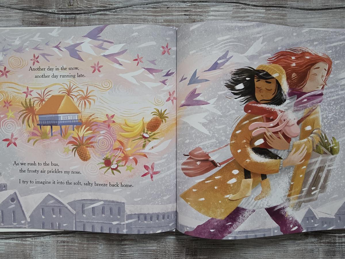 Лакшми только что переехала из сельской солнечной Гайаны в город в ледяной, холодной Миннесоте. Ее семья изо всех сил пытается приспособиться к новой стране, но для Лакшми самое трудное — это холодная, слякотная, белая штука повсюду. Снега не было в Гайане, но в Миннесоте его не избежать. Лакшми слишком боится ходить по нему, поэтому ее маме приходится носить ее повсюду на руках. Но когда она встречает нового друга в автобусе, страхи Лакшми тают, открывая храбрость, о которой она и не подозревала.
