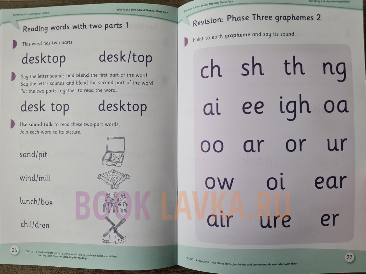 Sound Phonics prepares children for full fluency in reading, writing and spelling by providing intensive practice in phonics. A comprehensive phonics resource, it is fully compatible with 'Letters and Sounds' and any other incremental phonics programme. Its graded activities, best completed with an adult, reinforce early literacy skills through listening and speaking, and support a multi-sensory approach. Sound Phonics Phase Four is the fifth book in the series and a one-per-child activity book. It focuses on: consolidating knowledge of the 42 phonemes through intensive practice; saying and blending sounds in a word using 'sound buttons' to support reading; using phoneme frames to support segmenting for spelling; counting phonemes to boost confidence in spelling; forming letter shapes independently