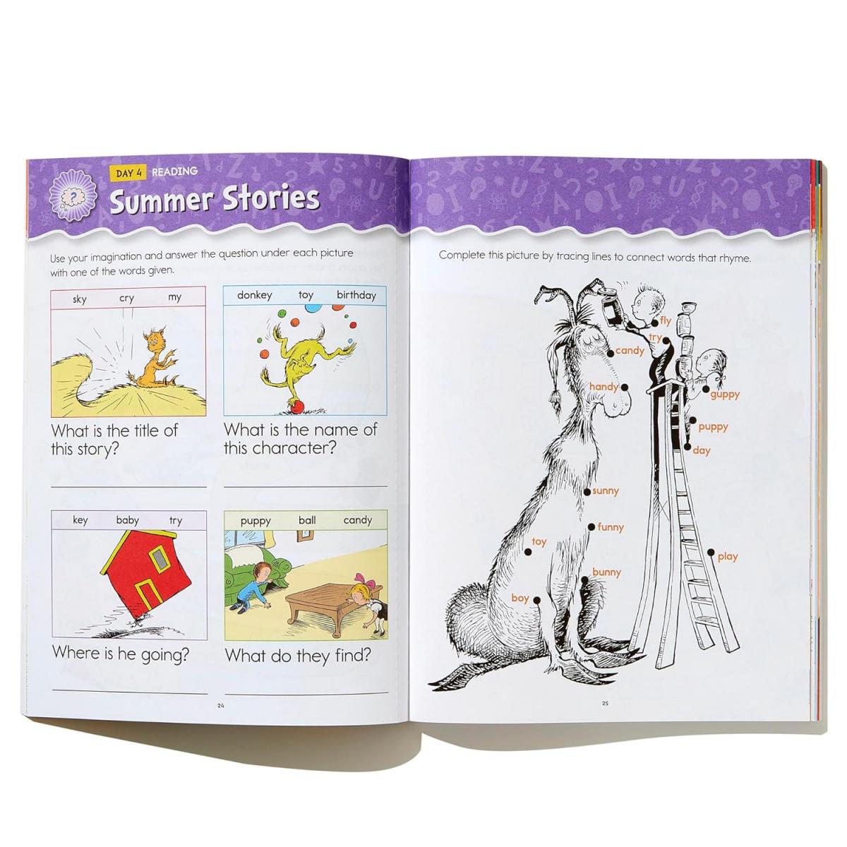 Остановите "летний спад" с помощью доктора Сьюза! Задержка в обучении во время летних каникул может стать проблемой, но с помощью серии рабочих тетрадей "Лето с Сьюзом" вы сможете заставить своего ребенка улыбаться и учиться с конца учебного года до начала следующего.
