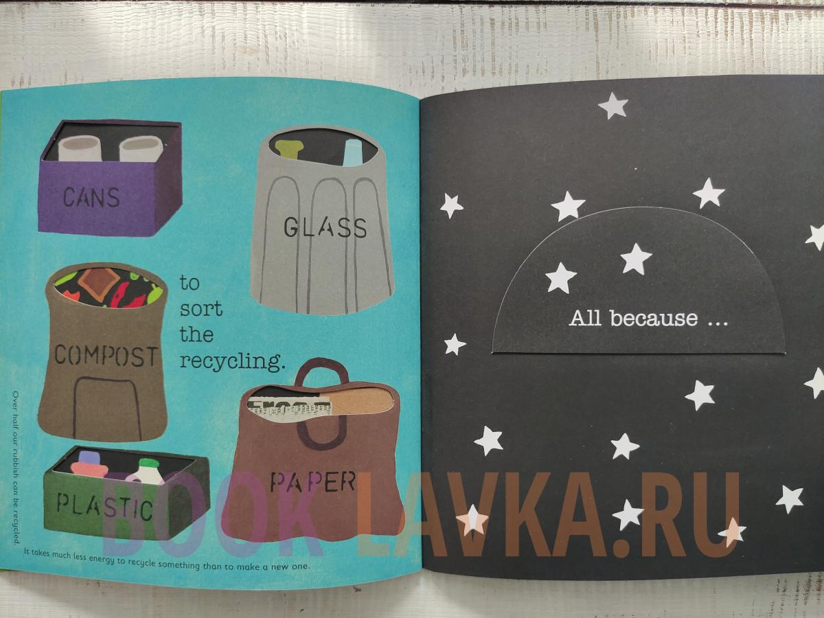 A beautifully simple book for small children where transforming pages reveal ten things that everyone can do to help conserve their world. Many of them, such as turning off the television properly, walking to school and turning off lights when leaving a room, are about conserving energy. Others, such as feeding the birds in winter and growing plants from seed, will encourage an understanding of nature and conservation.