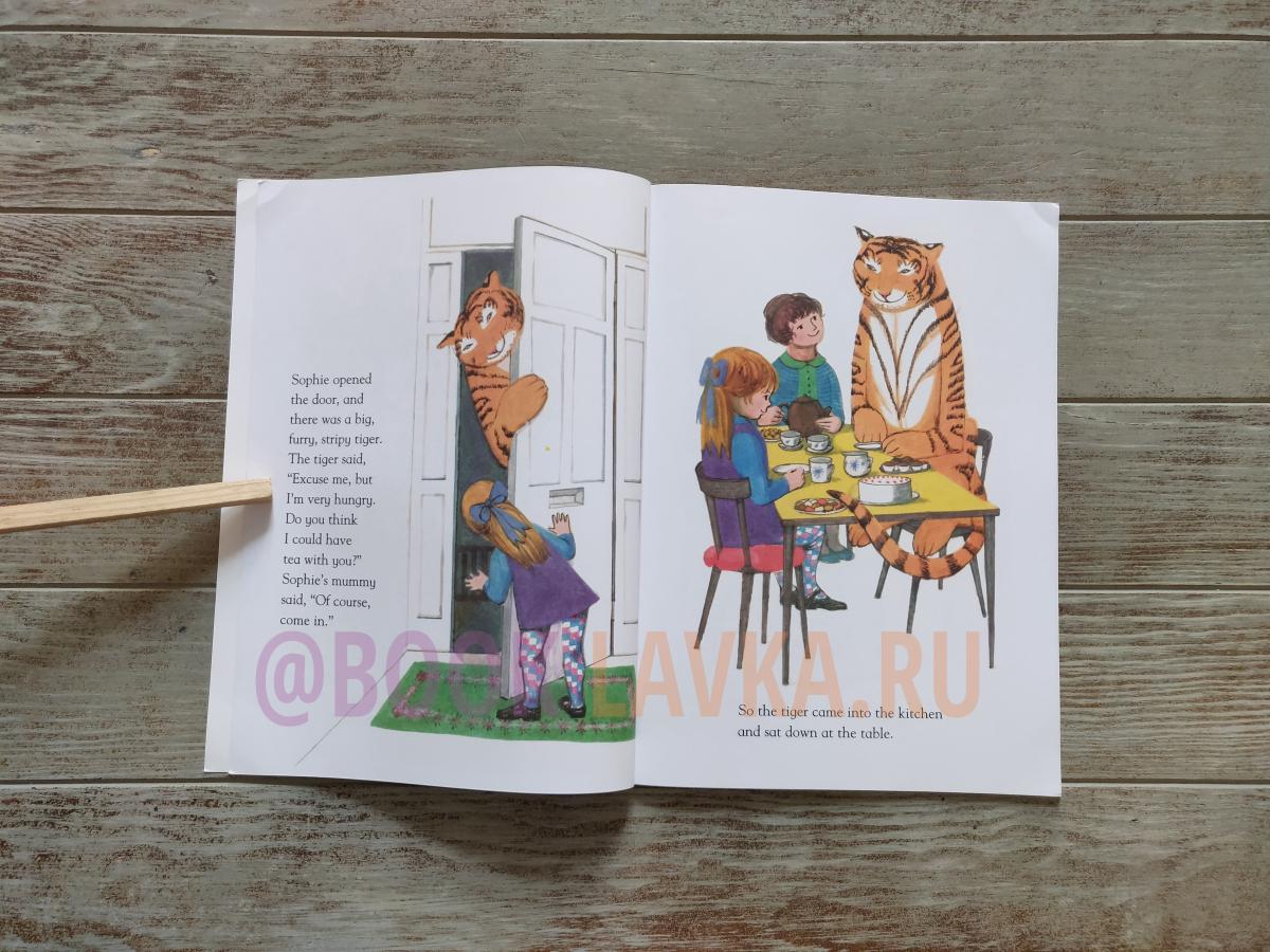 Звонок в дверь раздается как раз в тот момент, когда Софи и ее мама садятся пить чай. Кто бы это мог быть? Чего они, конечно, не ожидают увидеть у двери, так это большого пушистого полосатого тигра!