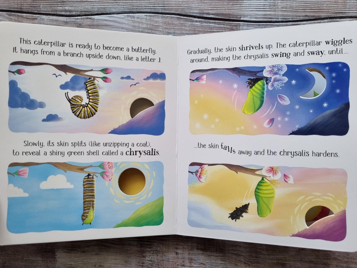 Follow the incredible journey of a butterfly as it grows from an egg to a ravenous caterpillar and finally emerges from its chrysalis, a beautiful fluttering butterfly. This interactive title, with its cleverly designed holes, will spark interest on every page. Specially written for little children, it is perfect for a first introduction to the truly spectacular wonders of nature.