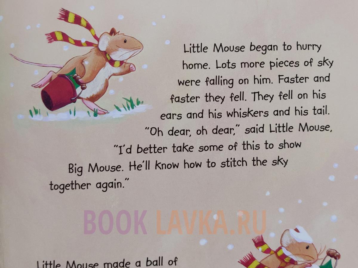 Уютная, тёплая история о мышках, которые готовятся к Рождеству. Пока они украшают дом, Маленькая Мышка выходит на улицу за веточкой падуба – и оказывается в мире, который вдруг превращается в белое, тихое чудо. Снег ложится на всё вокруг, а среди сугробов появляются загадочные формы и предметы, которые нужно рассмотреть и отгадать.