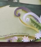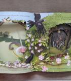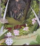 Девочка идёт по лесной тропе, а вокруг оживают цветы, птицы и ветви, будто приветствуя её своим шелестом. С каждым шагом путь становится всё удивительнее, а за каждым поворотом ждёт новое открытие, спрятанное в вырезанных из бумаги чудесах.