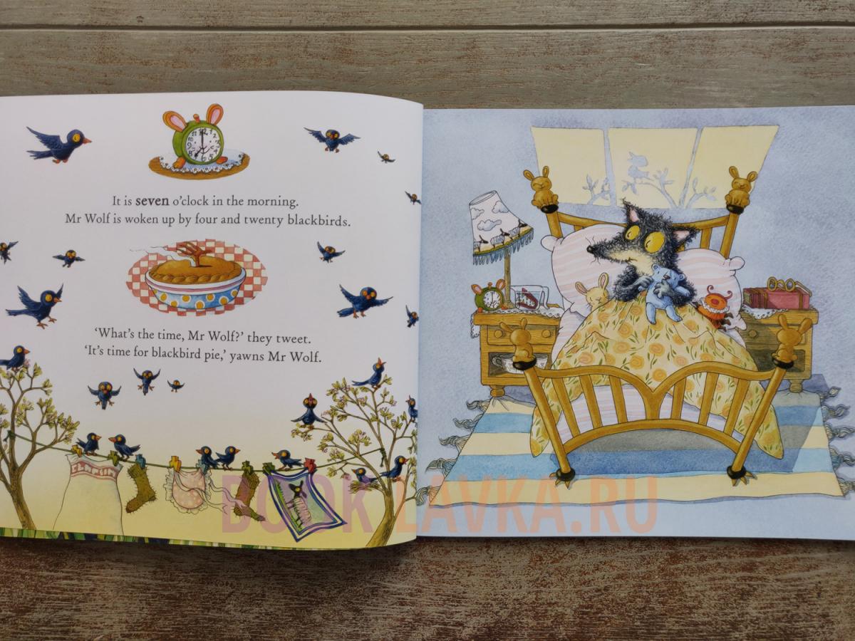 В этой истории Мистер Волк проживает свой день от завтрака до сна и постепенно открывается совсем не таким страшным, как о нём говорят. На его пути появляются знакомые персонажи из детских сказок и потешек: Красная Шапочка в роли почтальона, озорные три поросёнка, кот-виртуоз со скрипкой и даже чёрные дрозды из старой считалки.