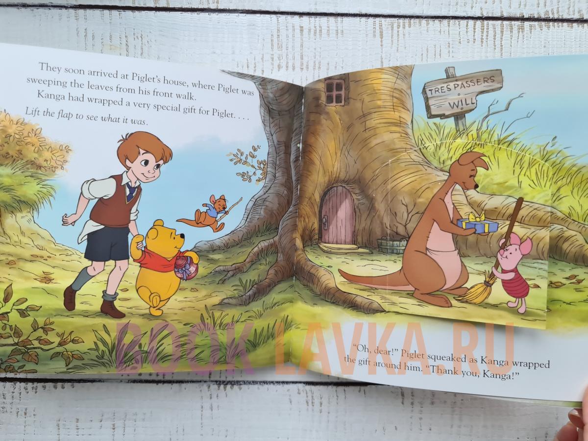 A Lift-the-Flap Pooh Bear Adventure One morning, Christopher Robin invites Winnie the Pooh on a Gift-Giving Expedition through the Hundred-Acre Wood. Pooh wraps a pot full of honey to give away, but with each visit to his friends, his tummy gets a little more rumbly. Who will Pooh Bear give his honeypot to in the end? Lift the flaps of this delightful gift-giving tale to find out!