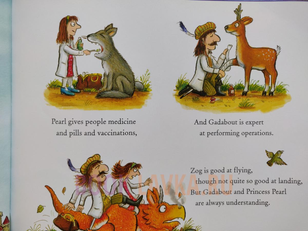 Meet the Flying Doctors: Princess Pearl, Sir Gadabout and, of course, their trusty 'air ambulance', Zog the dragon, in this fabulously original sequel to the bestselling ZOG, now available in paperback. There's much to do, as they fly around tending a sunburnt mermaid, a distressed unicorn and a sneezy lion. But should princesses really be doctors? Pearl's uncle, the King, doesn't think so - until he himself falls ill, and only Pearl knows how to curehim.