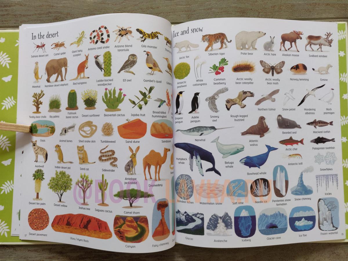 В этом прекрасно иллюстрированном справочнике представлены 1000 вещей, встречающихся в природе, от знакомых насекомых и цветов до экзотических райских птиц и очаровательных подводных существ. Дети могут поразмышлять над такими темами, как "В джунглях", "Лед и снег" и "Окаменелости, камни и драгоценные камни", а также познакомиться с дикой природой из разных мест на нашей планете.